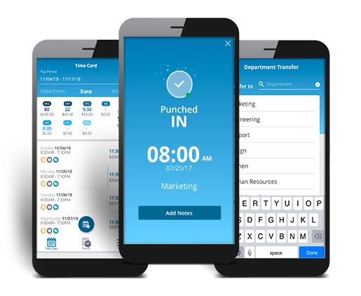 Voice recognition supports basic and advanced time clock functions. Punch in and out for shifts, breaks, lunches, department transfers and job tracking with simple voice commands!